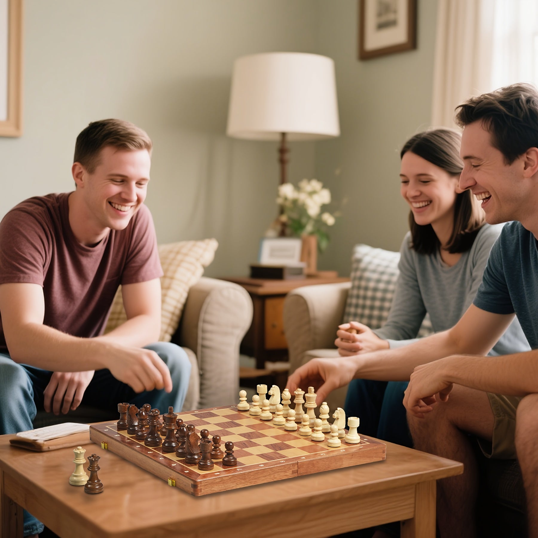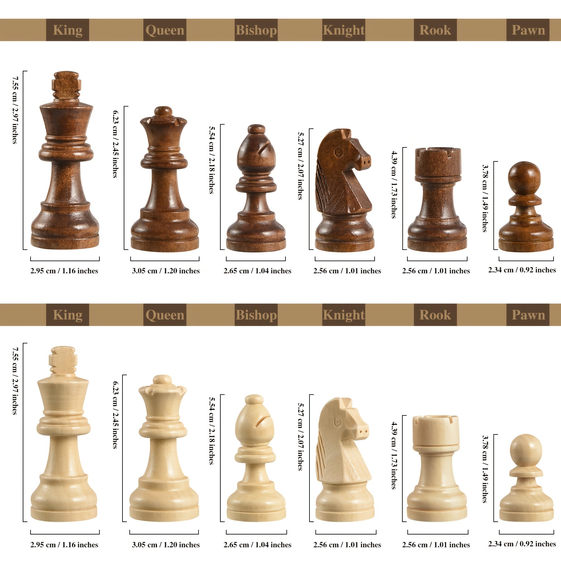 Chess / 15" x 15" Premium Folding Chess Set - Handcrafted Solid Wood Pieces, Classic Design with Black & White Checkers, Includes 2 Rooks, 2 Knights, 2 Bishops, 2 Queens, 1 King, 1 Knight, 1 Bishop, 1 Queen, 1 King - Ideal Gift for H