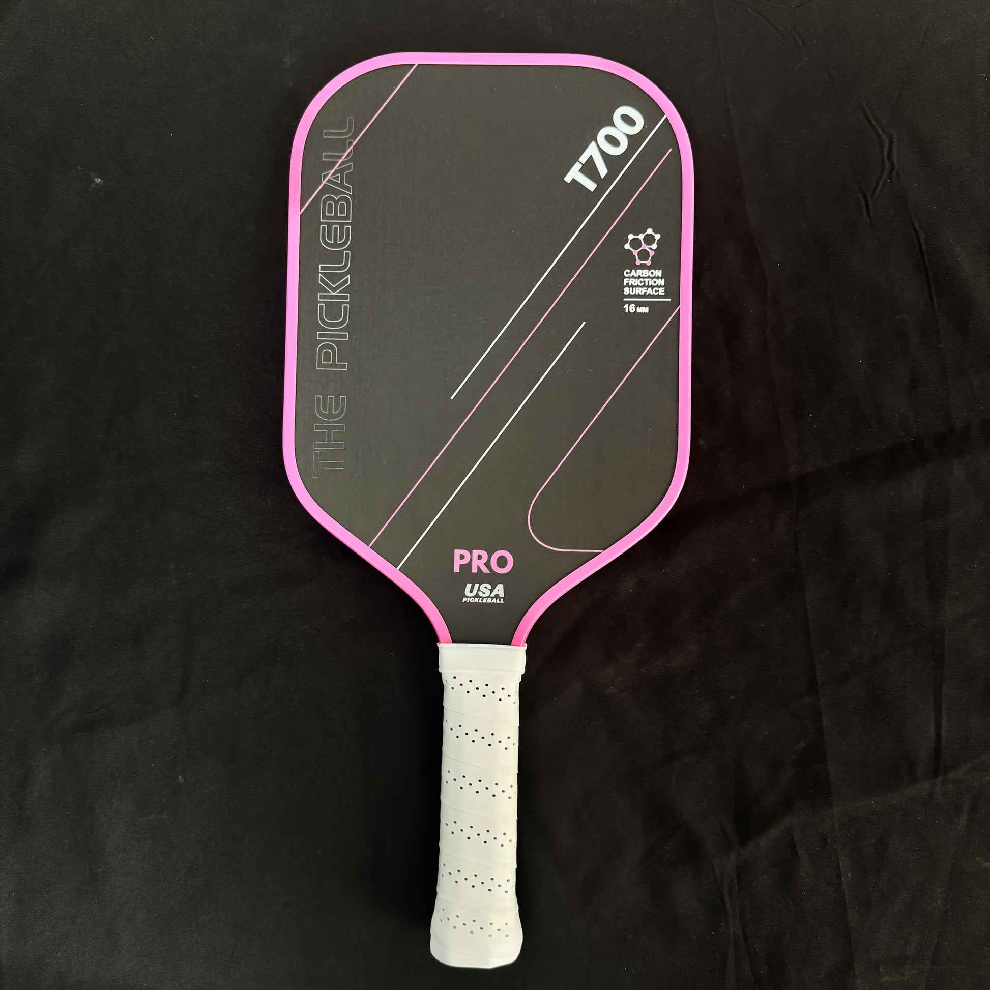 Pickleball, 1pc T700 Carbon Fiber Pickleball Paddle - Pink, Cold Pressed with Cloth Pattern Finish, 16mm Profile, Textured Surface for Powerful Spin and Balance