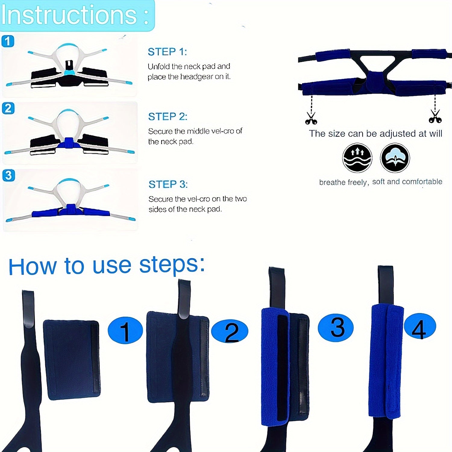 5pcs Set CPAP Strap Covers CPAP Neck Pad For CPAP Supplies Reduce Headgear Pressure And Cheek Red Marks Extend Useful Life Includes 4 CPAP Strap Cushions & 1 CPAP Comfortable Neck Pad