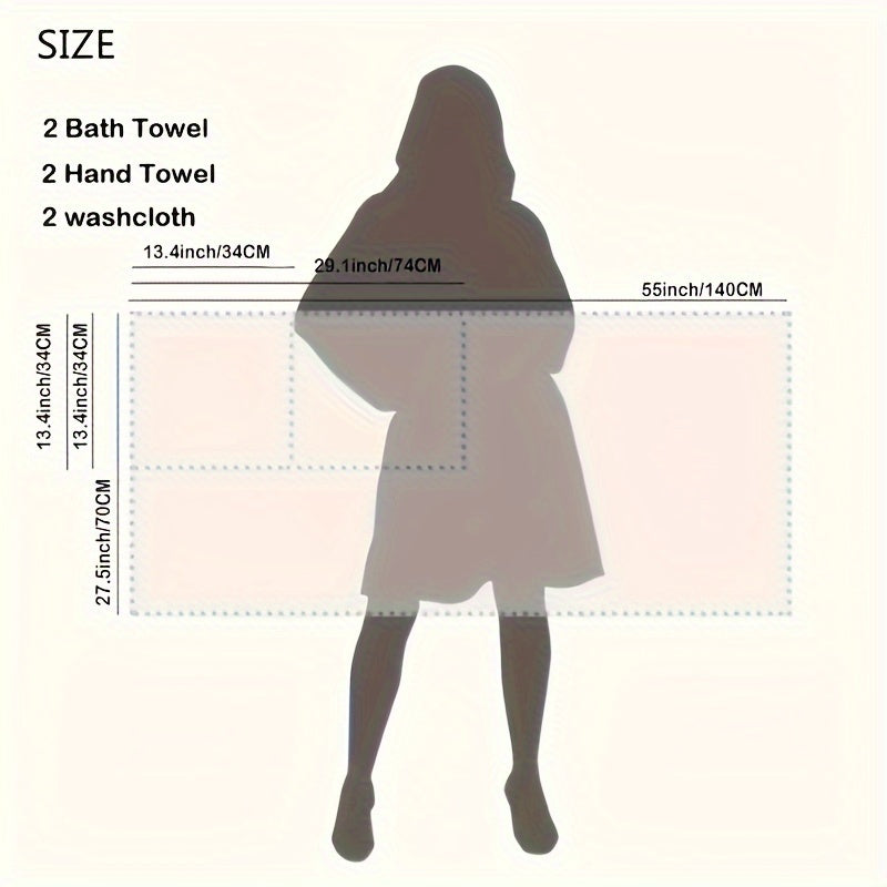 6pcs Towel Set, 2 Bath Towels 2 Hand Towels 2 Washcloths, Soft Cotton Towels, Plain Absorbent Towel For Home Bathroom, Bathroom Supplies
