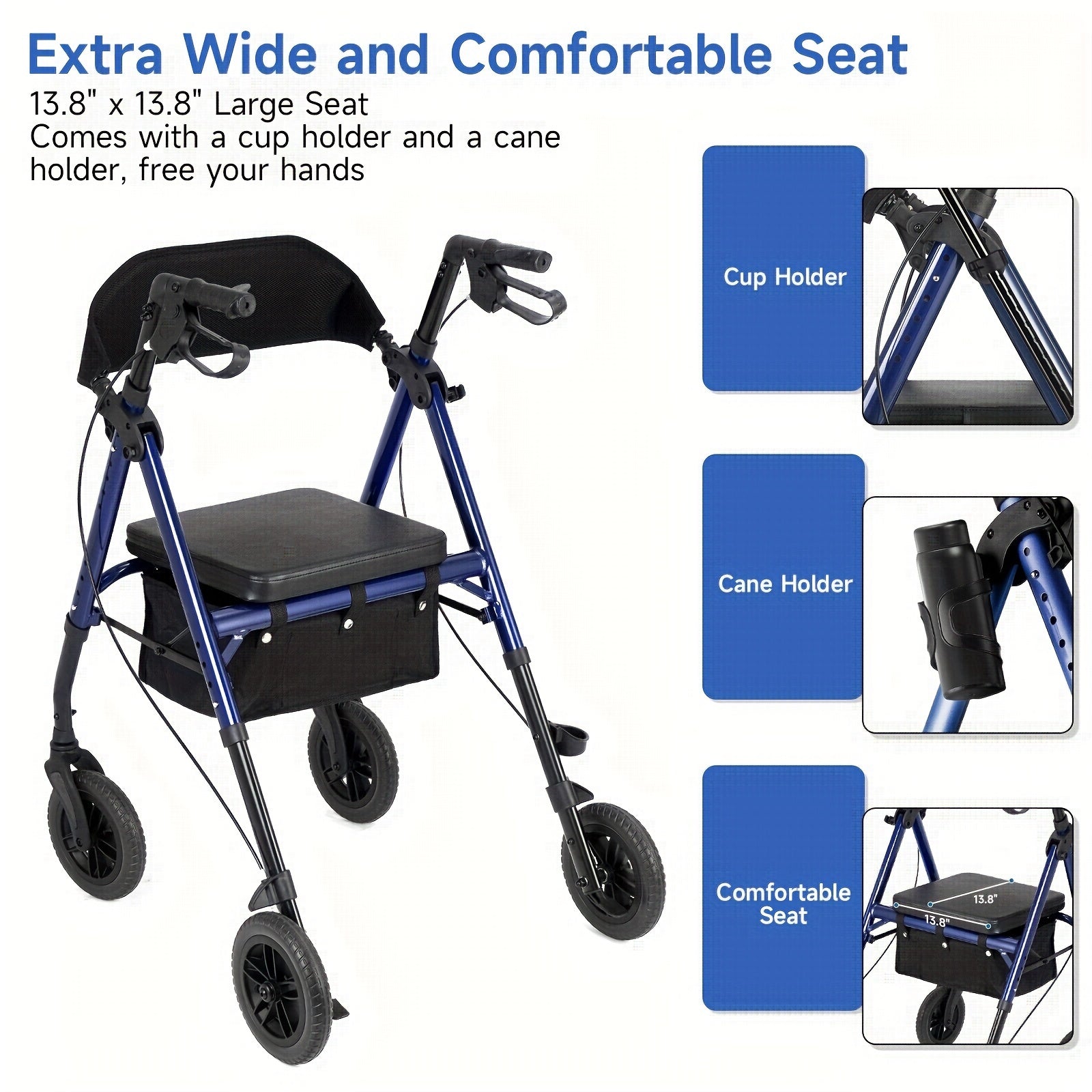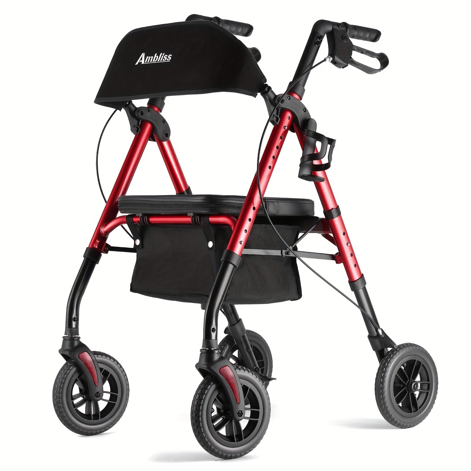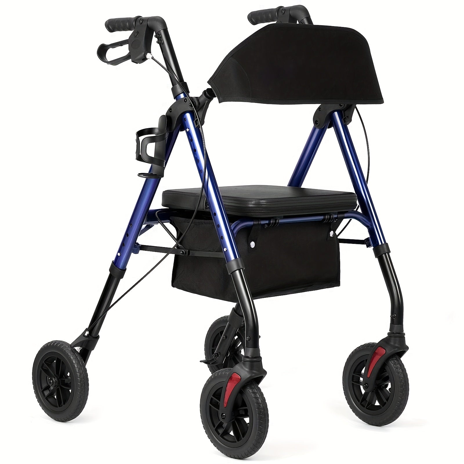 "8"" Inch Big Wheel All-Terrain Rollator Walker with Tray, Padded Seat & Backrest, Under-Seat Basket for Seniors"