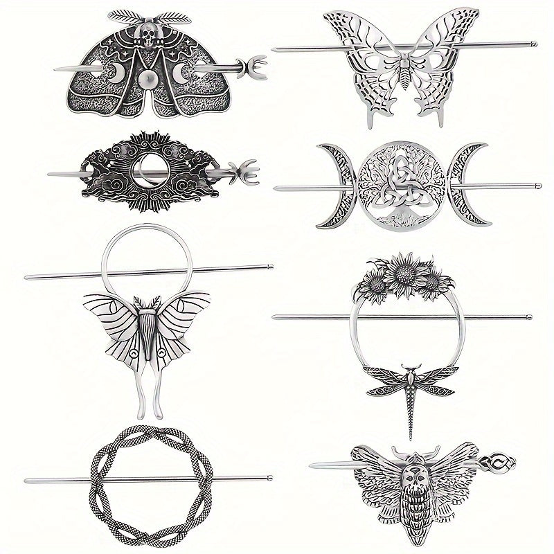8 PCS Vintage Crescent Cloud Hair Clips Witchy Moon Hair Stick Witches Halloween Hair Clips Pagan Gothic Hair Wiccan Viking Hair Clips Jewelry Holiday Gifts