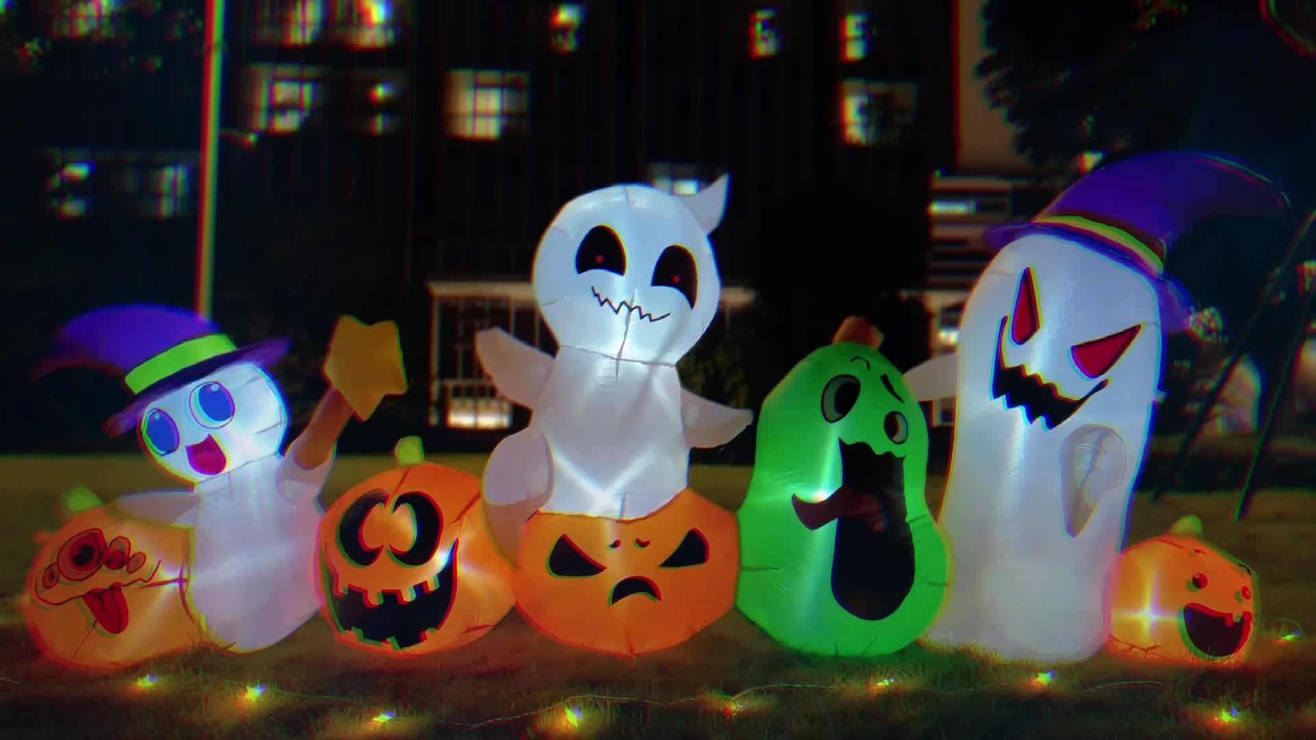 8ft Halloween Inflatables Ghosts Pumpkins Witch Hat Gnome Combo Decoration with LED Light Halloween Inflatables Outdoor Decorations Blow Up Inflatables for Halloween Holiday Party Yard Garden Decor