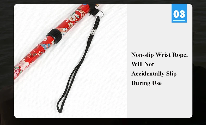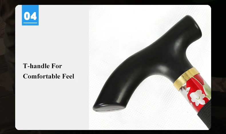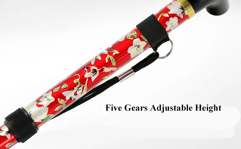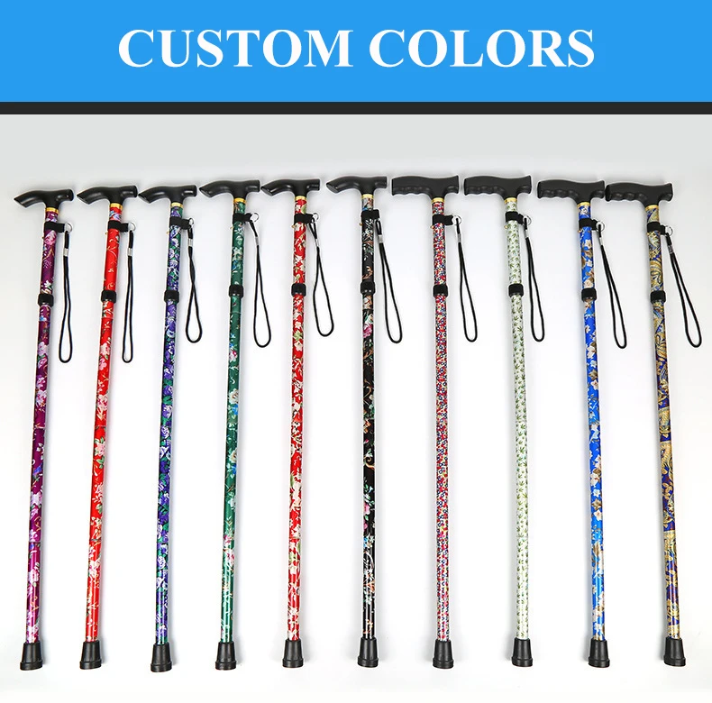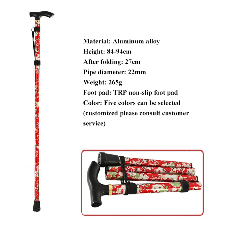 Comfortable T-Handle Printing poles 5-Level Folding Walking Cane Lightweight Adjustable Portable Hand Walking Stick