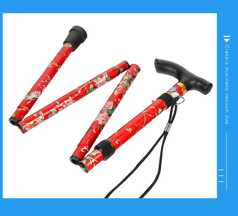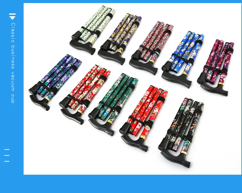 Comfortable T-Handle Printing poles 5-Level Folding Walking Cane Lightweight Adjustable Portable Hand Walking Stick |