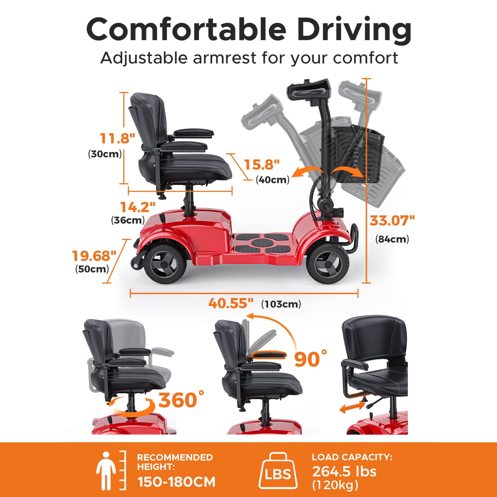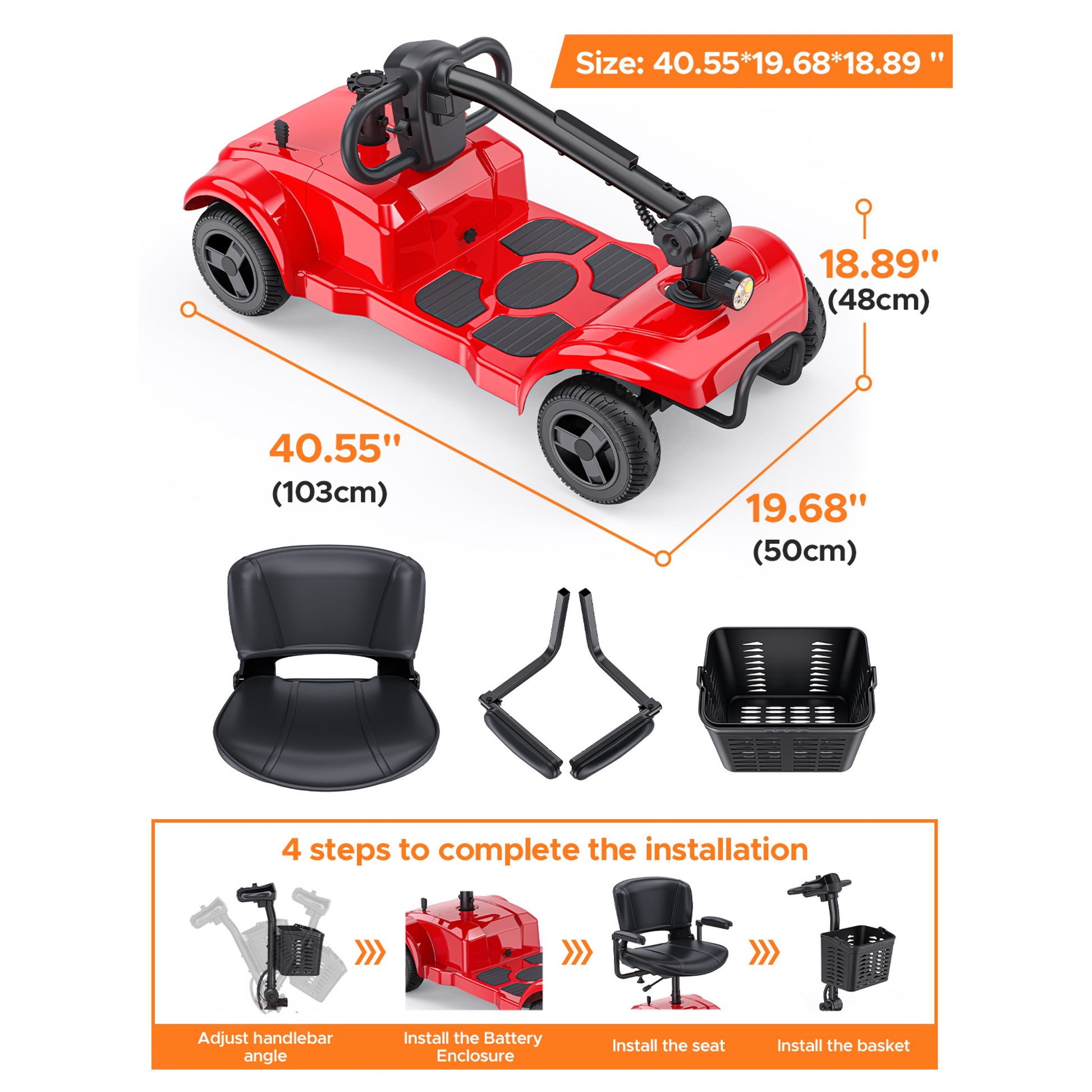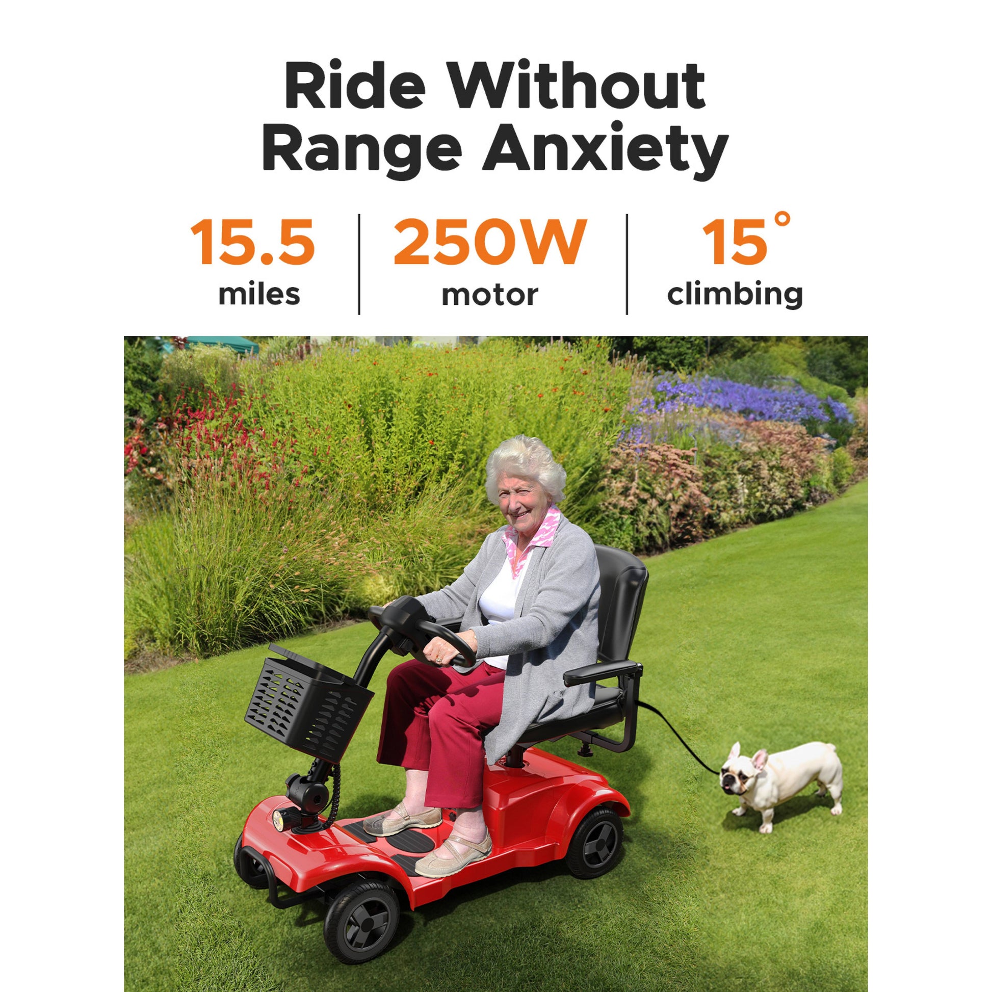 ENGWE Folding 4-Wheel Mobility Scooter, 250W 24V Motor, 15 Miles Long Range For Adults With Detachable Basket, Front Light, 265lbs Max Weight, Halloween Christmas Gifts