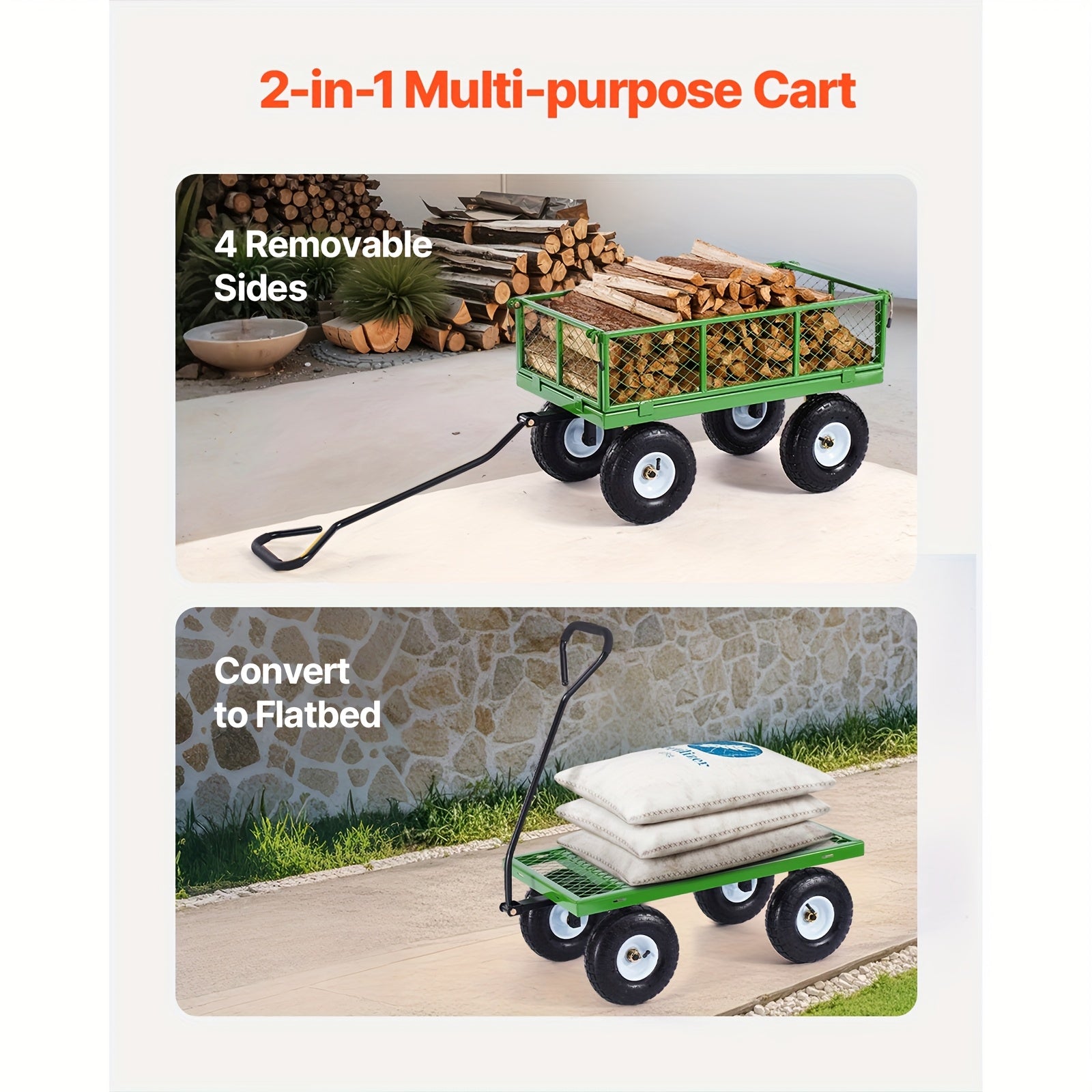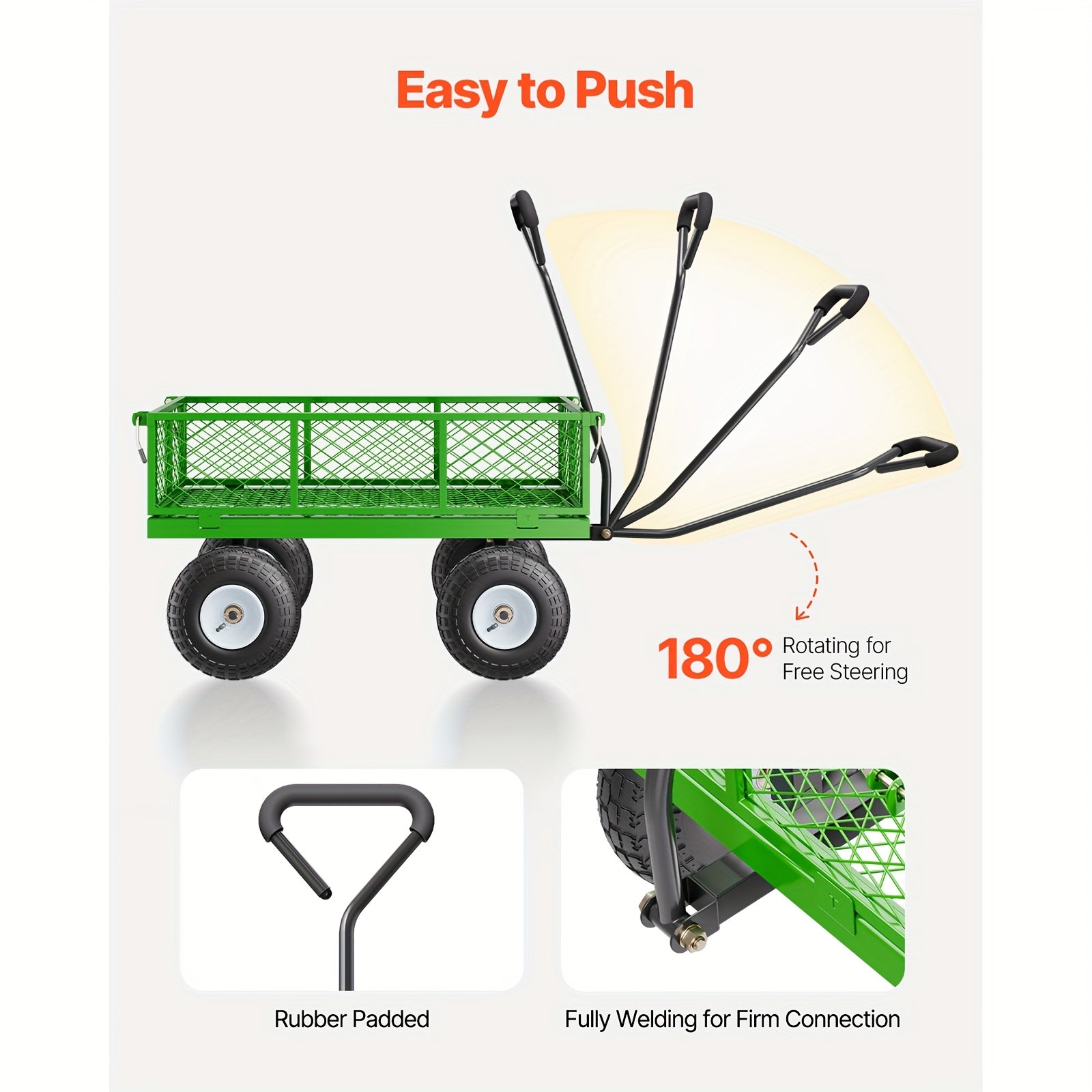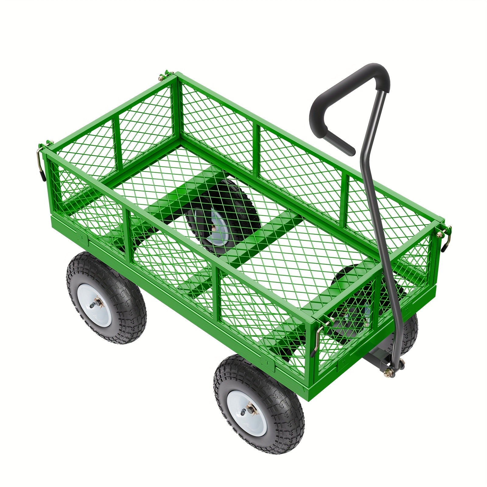 Happybuy 500/680/900/1200/1400 Lbs Steel Garden Cart On Wheels, Heavy Duty Pullable Garden Wagon, Metal Outdoor Utility Yard Cart With 10" Tires, Removable Mesh Sides And 180° Rotating Handle Green/ Yellow + Black