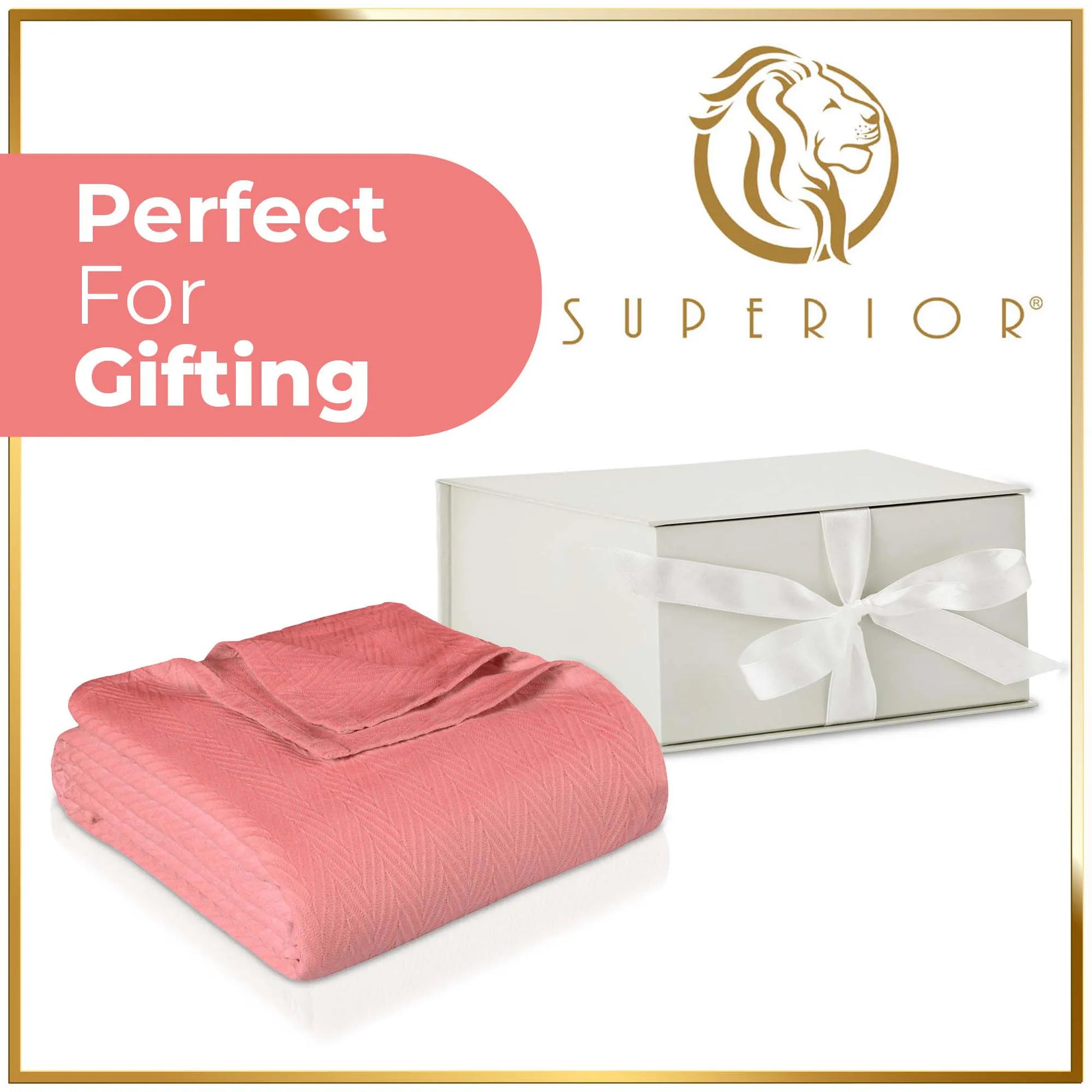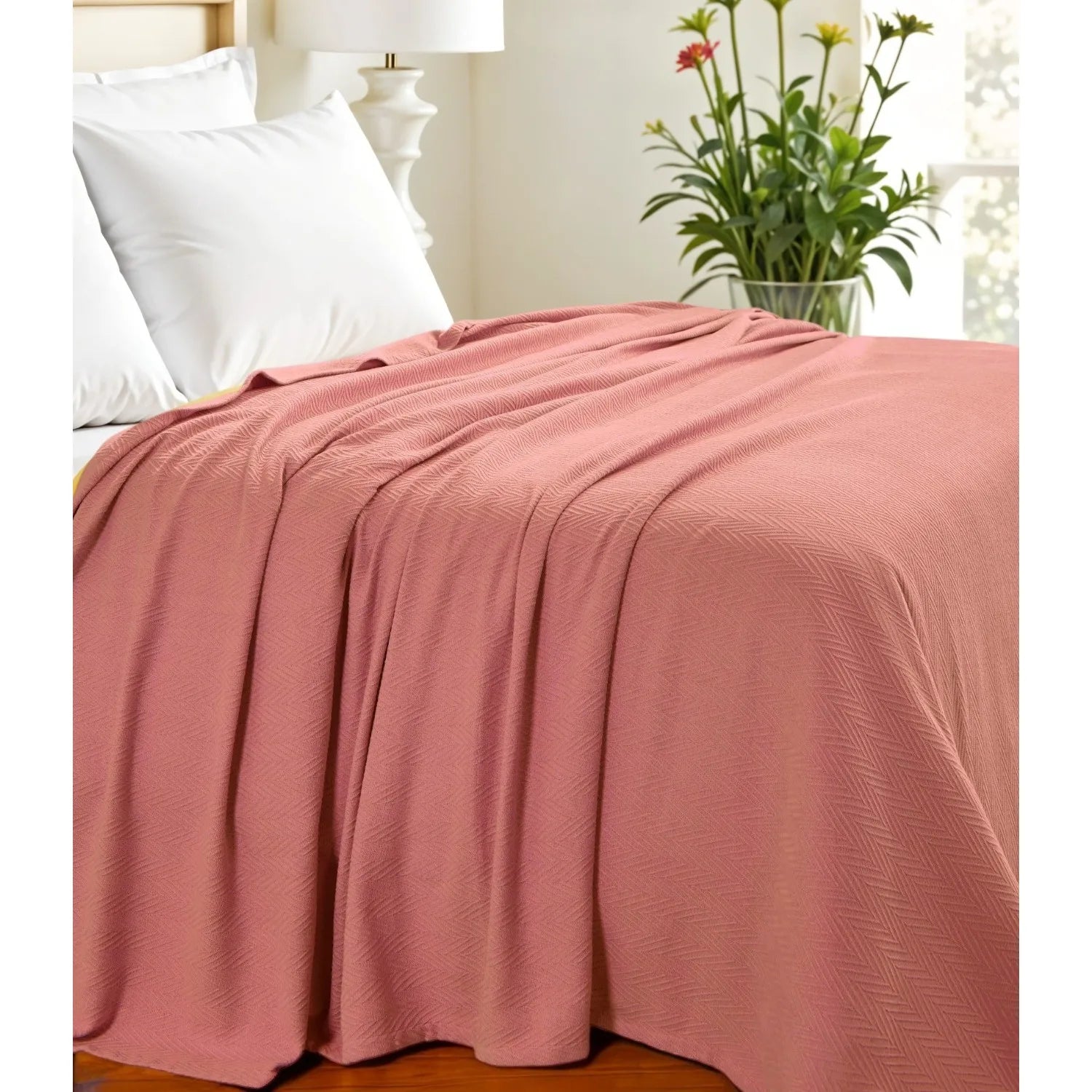 HMS California King Coral Cotton Woven Chevron Blanket Luxury Comfortable Coral Fleece Bedding