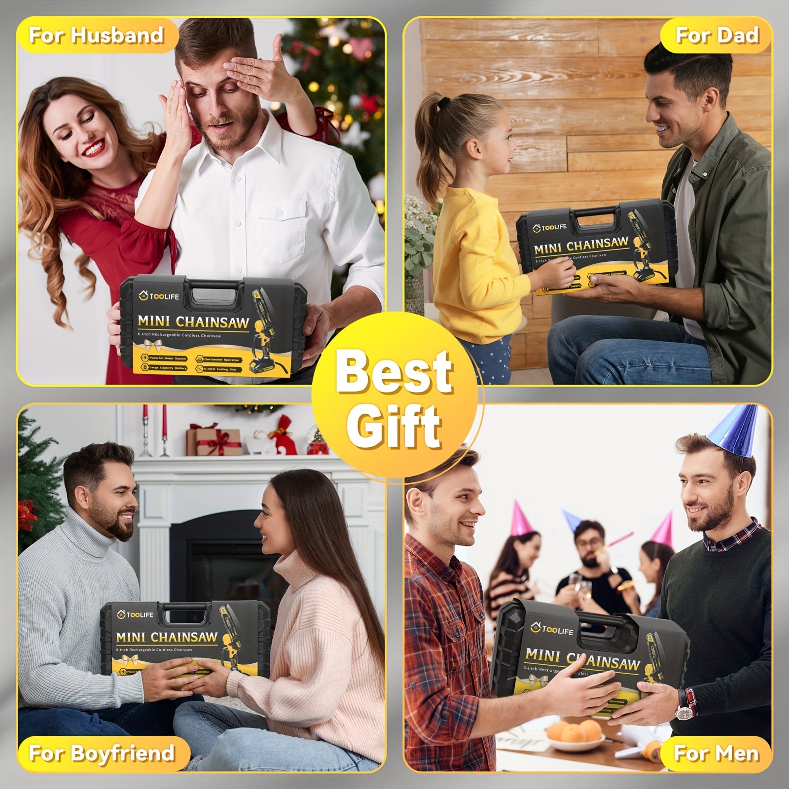 Mini Chainsaw Cordless, 6 Inch Handheld Electric Portable Power Chainsaw, 2 Rechargeable Batteries And Toolbox, Tree Trimming Wood Working & Cutting. Courtyard, Household, Survival Outdoor Tools. Gardening Supplies & Equipmen