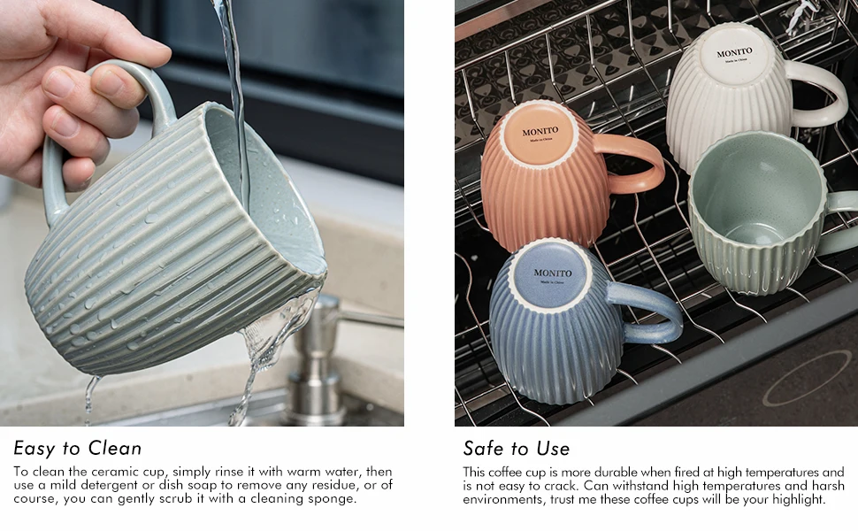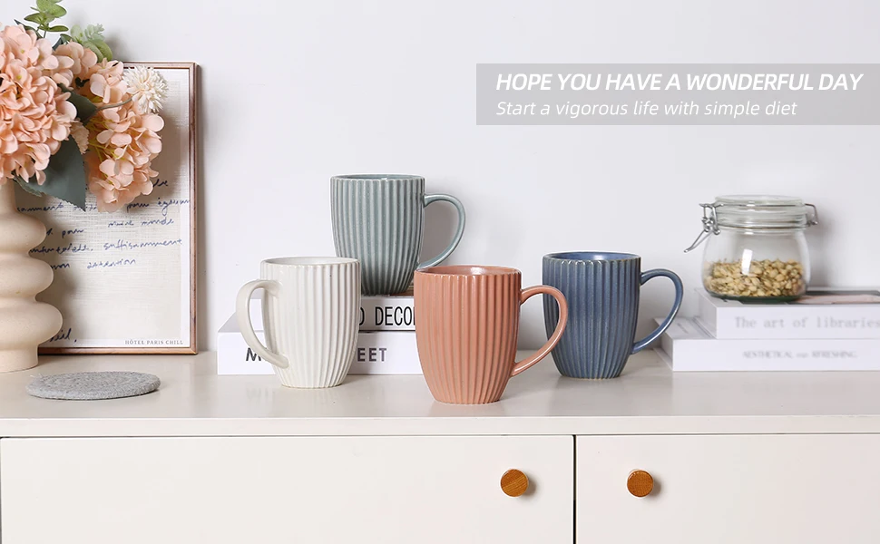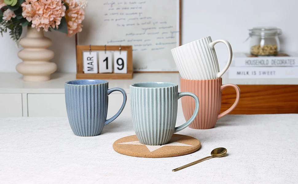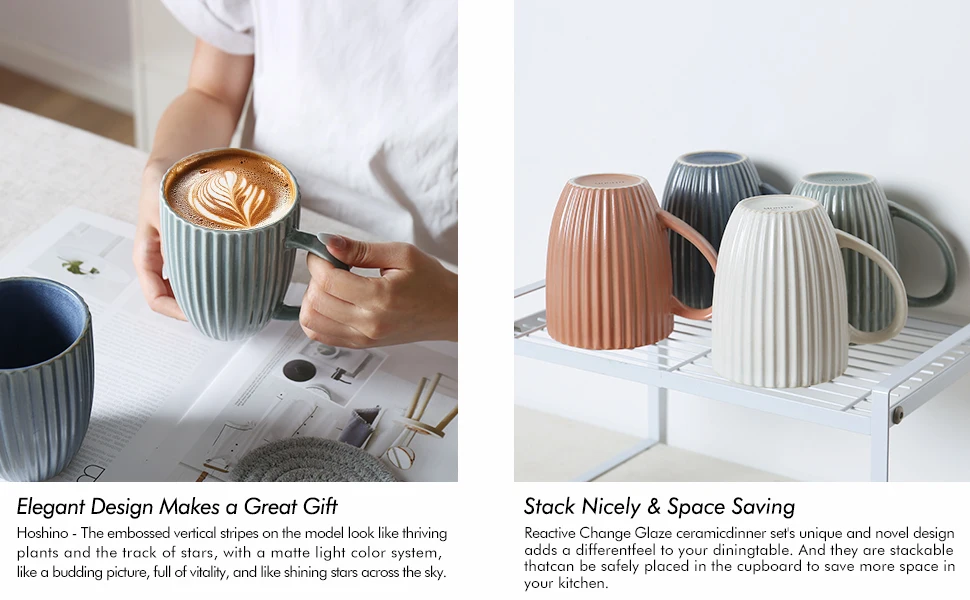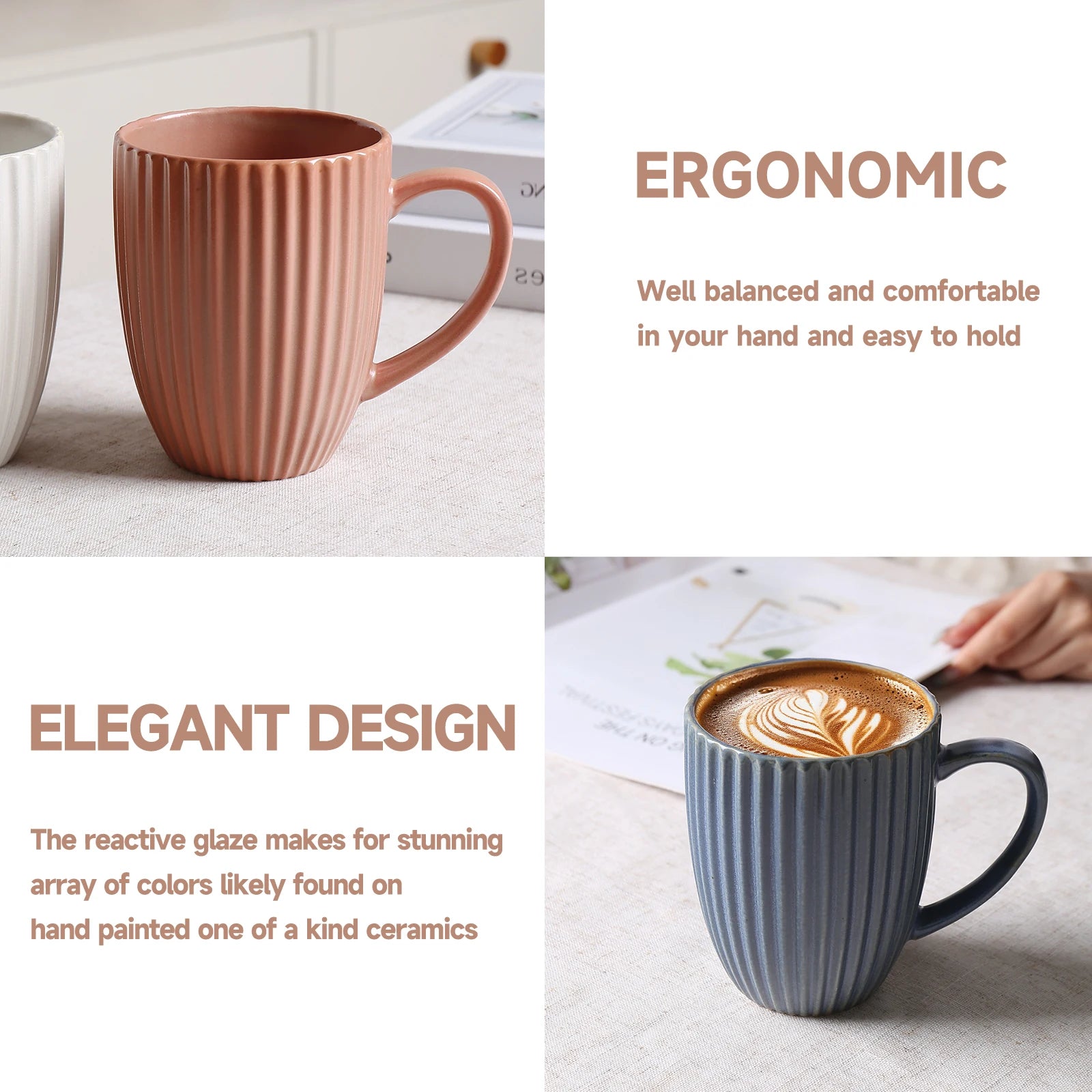 Modern 16oz Large Ceramic Coffee for Mugs Set of 4 Microwave & Dishwasher Safe Handle for Men & Women Gift Cup