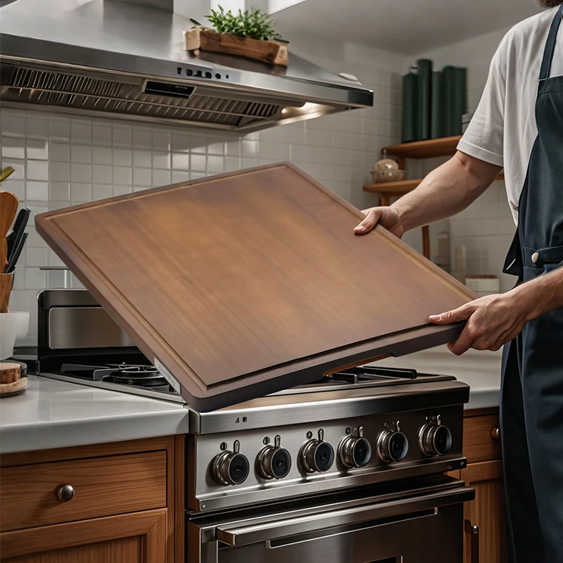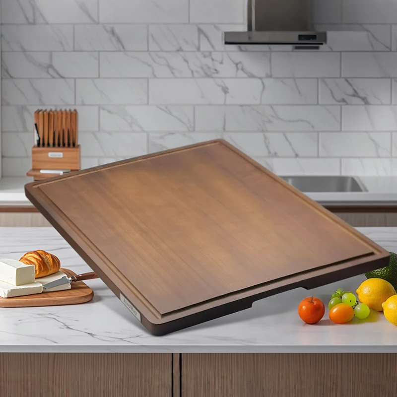 The natural wood grains and polished surfaces makes the cutting board a centerpiece in your kitchen.