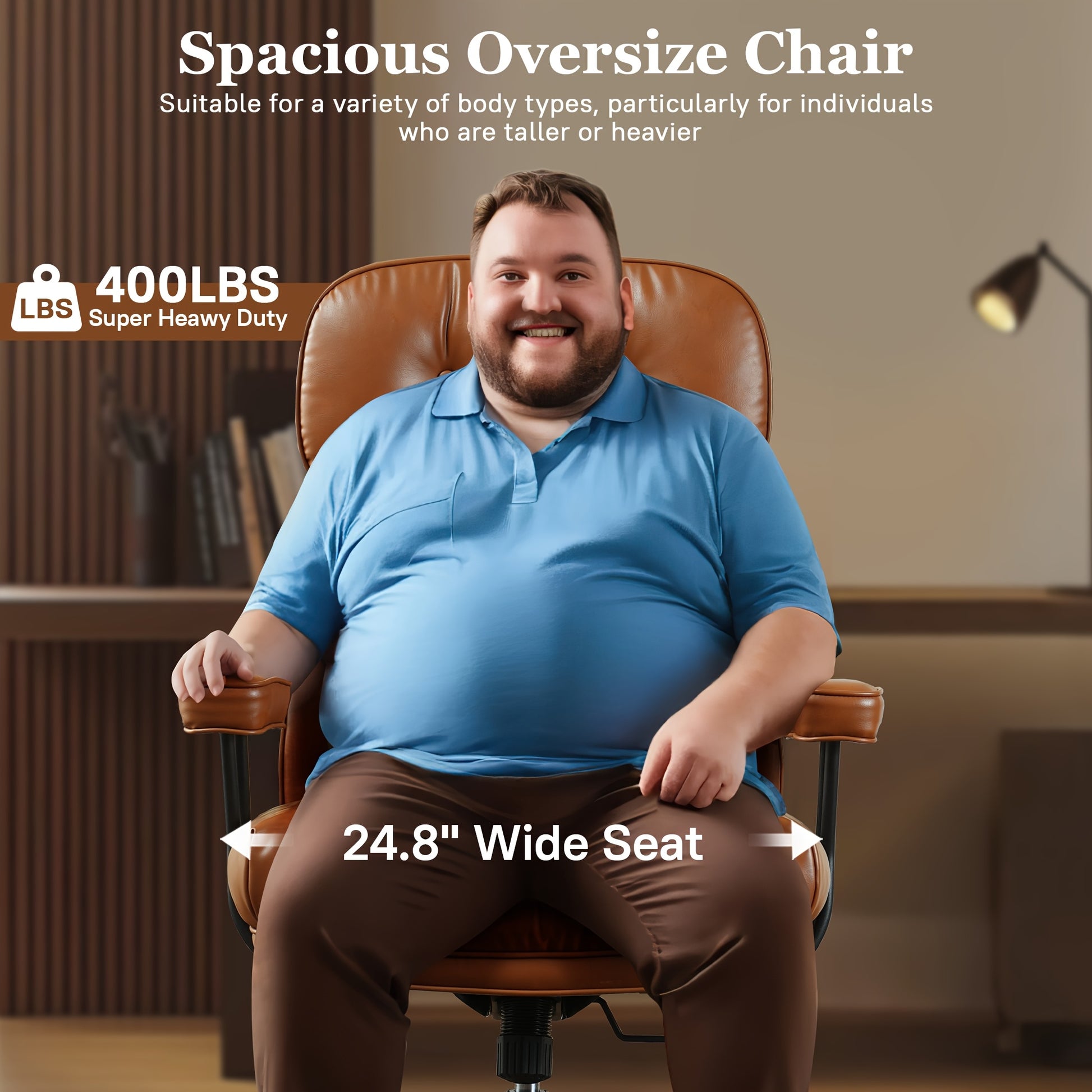 Oversized Modern PU Leather Executive Chair - Ergonomic High-Back Office Chair with Lumbar Support, Adjustable Height & Headrest, Padded Armrests, Heavy-Duty 5-Wheel Base, Manual Recline Mechanism, Smooth-Rolling Wheels for H