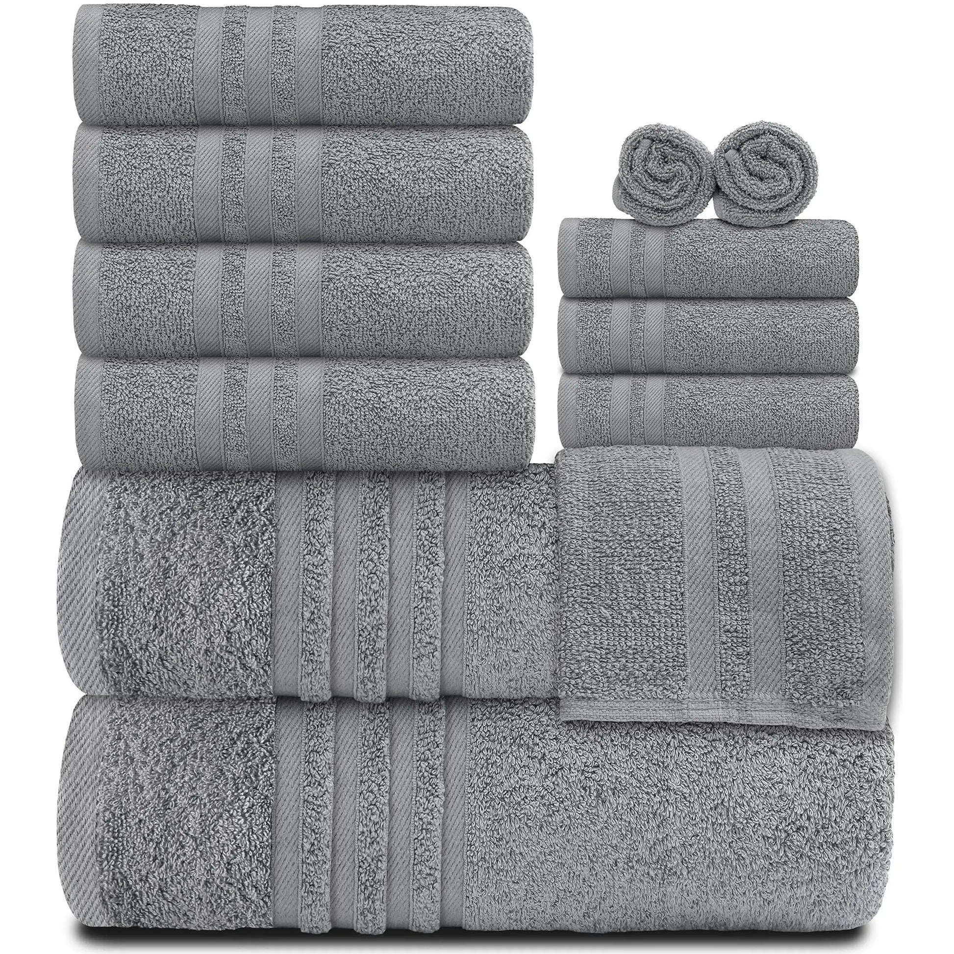 Bath Towels UD2 12-Piece Bath Towel Set Quick-Dry 100% Cotton Soft Wealuxe Collection for Bathroom-2 Bath Towels 4 Hand Towels 6 Washcloths