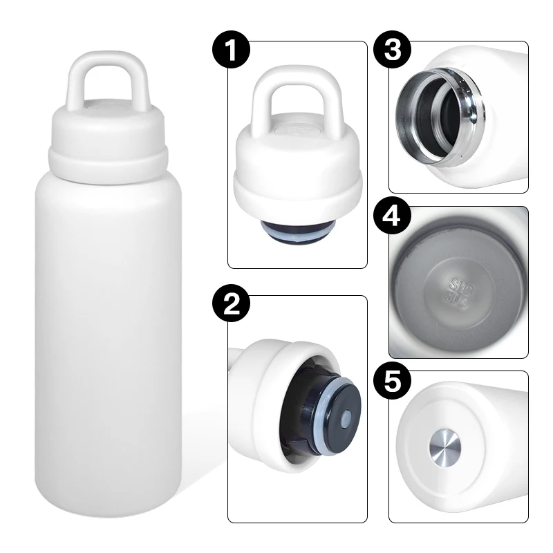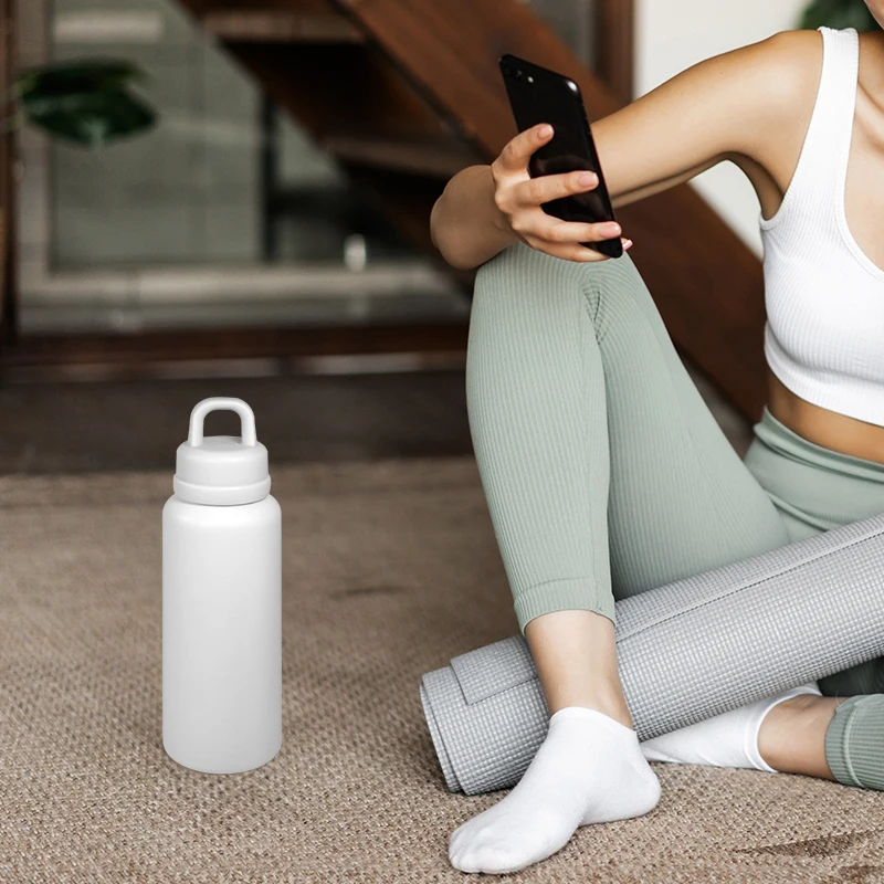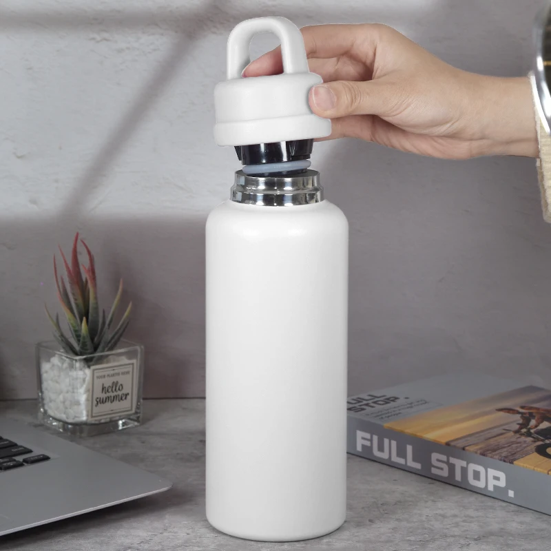 US RTS 26oz Stainless Steel Water Bottle Powder Coating Double Walled Tumbler Press Open Lid Vacuum Flask for Laser White